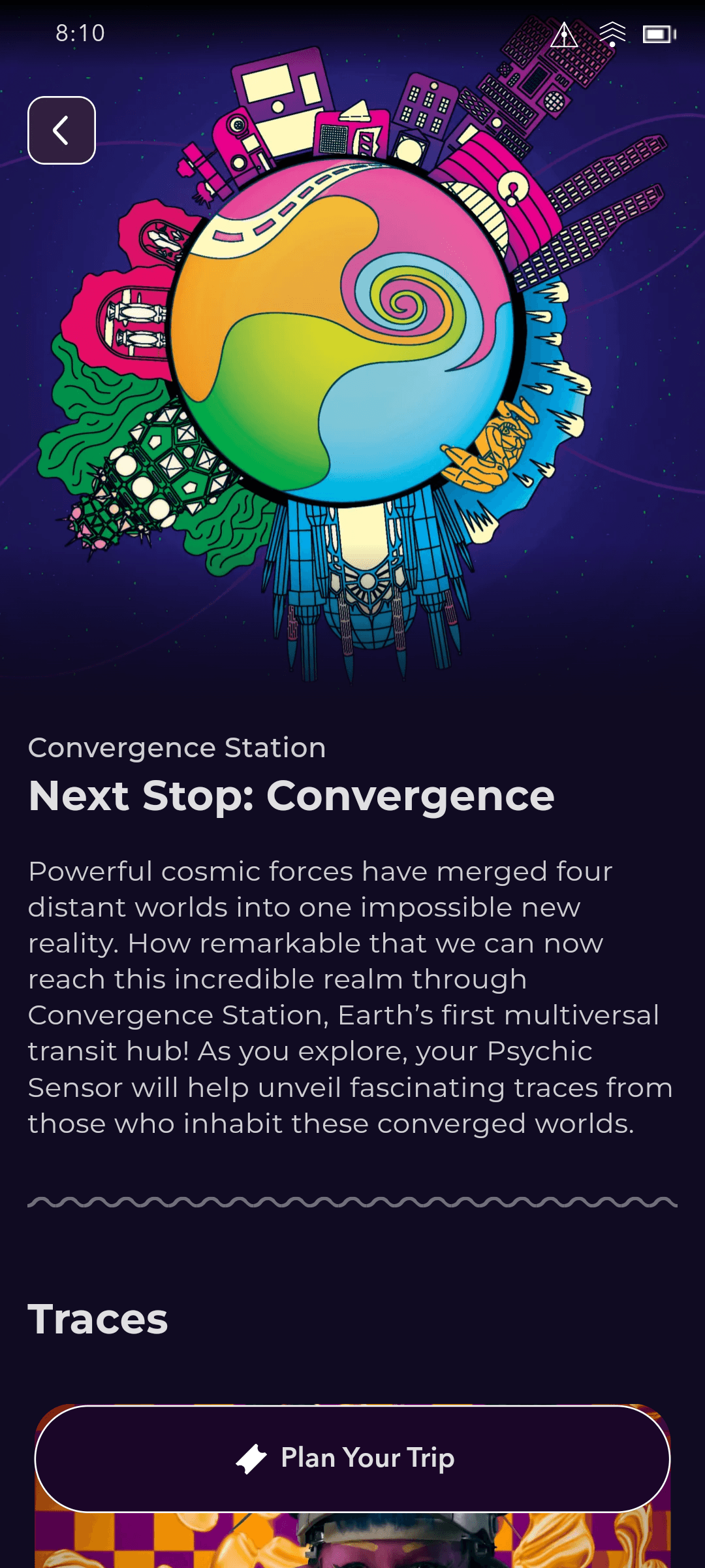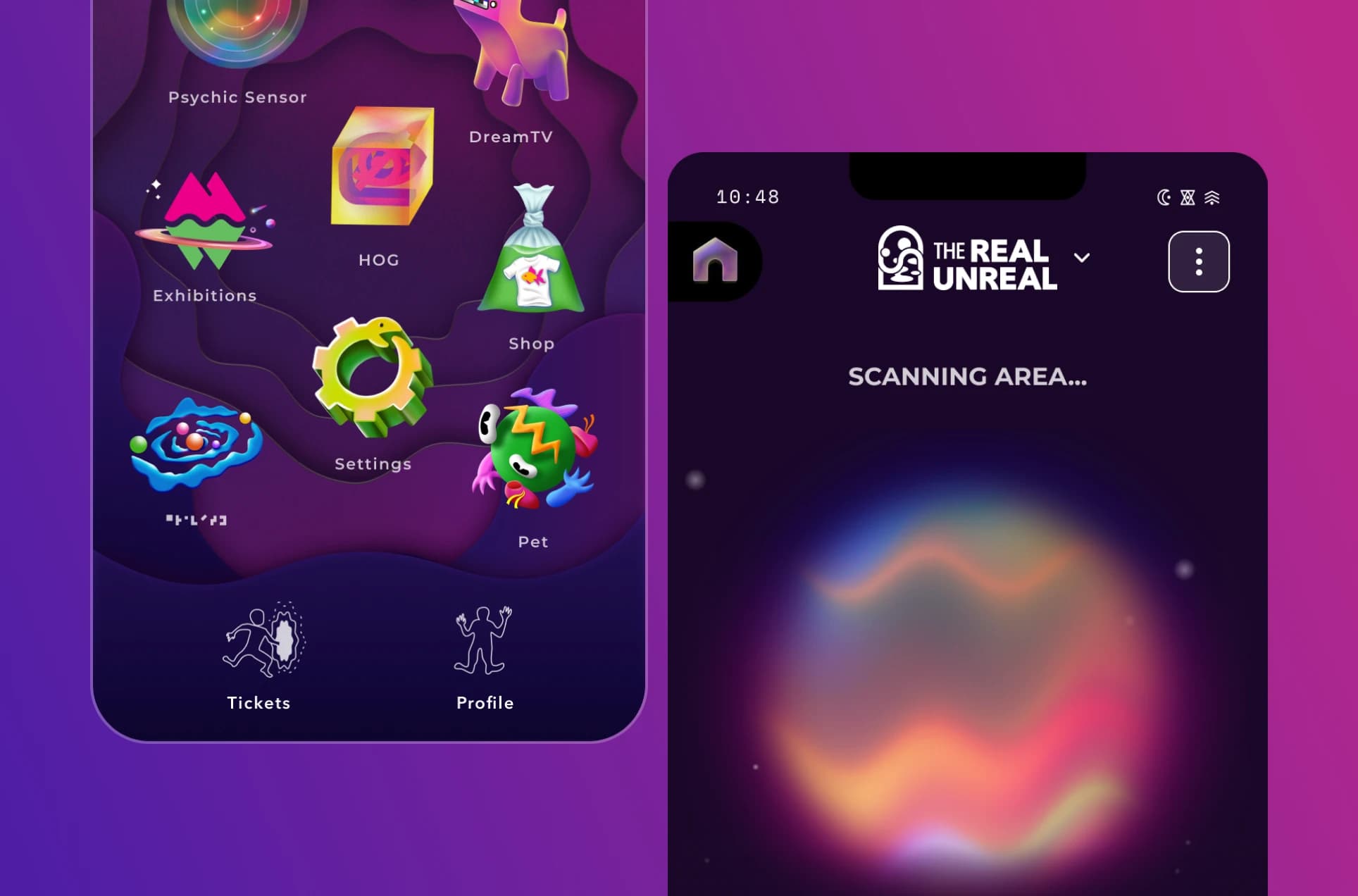 Meow Wolf aimed to create an app that would extend the Meow Wolf universe beyond their physical exhibitions and serve as a hub for ticket sales. Their original vision for the app was focused on keeping users engaged after they leave an exhibition.