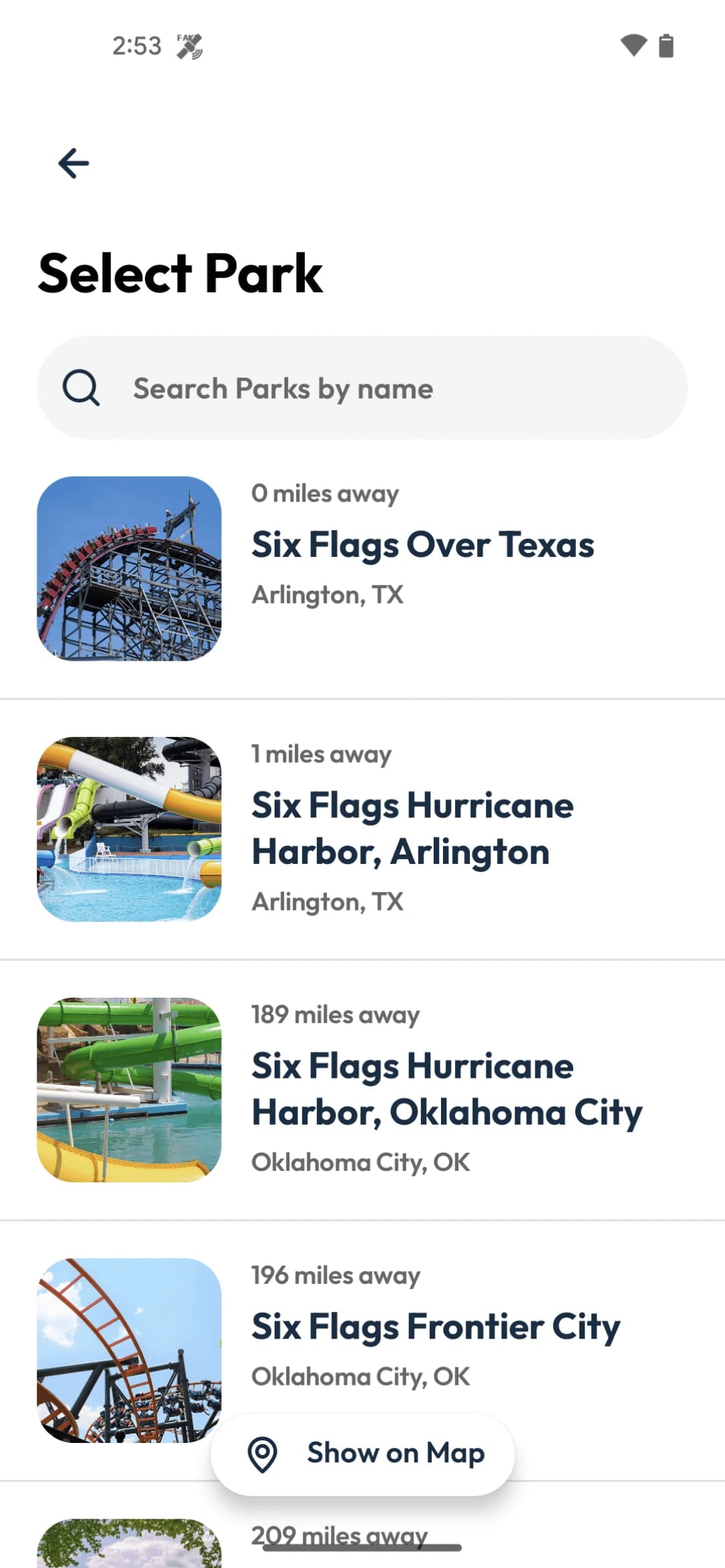 The most straightforward contribution to the project was list and detail screens for attractions within Six Flags' amusement parks. The only bit of complexity here was the introduction of Compose on the UI layer which was a technology I was using for the first time.
